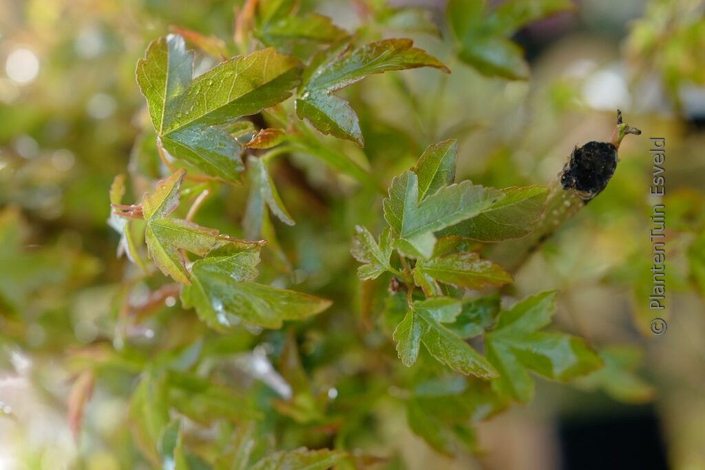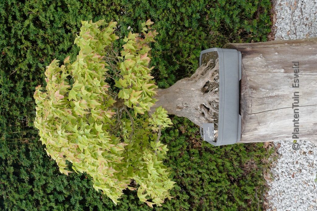 tree-like shrub that suited is for bonsai. This plant grows to about 500 cm. The leaf colour is bright green. The flowering period is April – May. This plant is hardy. Recommended quantity per square meter : 1. Common name : Trident maple Possible alternative : Acer buergerianum ‘Shirley Debacq’. Main difference: Acer buergerianum ‘Shirley Debacq’ has more upright habit. . Only available when ordered in advance.
