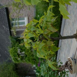 snakebark maple with reddish purple, white striped stem. This plant grows to about 5 meter. The leaf colour is green. This plant is completely hardy. Recommended quantity per square meter : 1. Common name : Red snake-bark maple Also available in larger sizes, prices on demand . . Only available when ordered in advance. .
