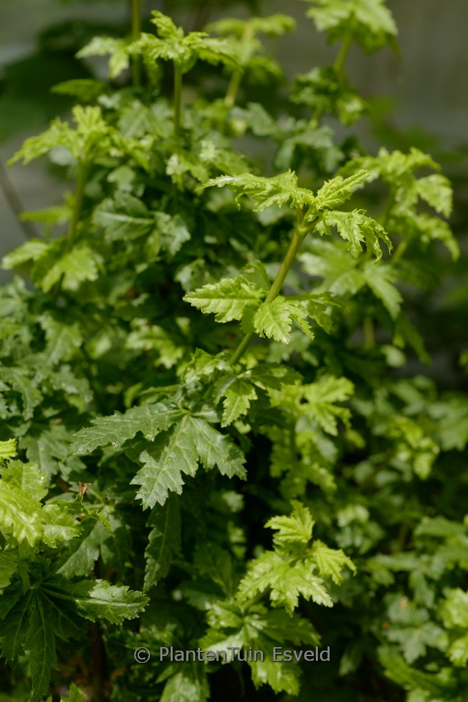 Yellow-green, small-leaved dwarf; found as witche’s broom. This plant grows to about 50 cm. The leaf colour is in the autumn orange-brownred. The flowering period is May. This plant is hardy. Recommended quantity per square meter : 3. Common name : Vine maple . . Only available when ordered in advance.