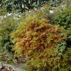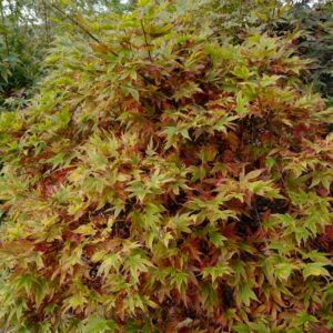 densely branched shrub with dark red spring foliage. This plant grows to about 150 cm. The leaf colour is red. This plant is completely hardy. Recommended quantity per square meter : 1. Common name : Smooth japanese maple Possible alternatives : Acer palmatum ‘Beni-maiko’. Main difference: Acer palmatum ‘Aratama’ dwarf. Acer palmatum ‘De-shohjoh’. Main difference: Acer palmatum ‘Beni-maiko’ grows many faster. . Is present in the plant shop. Please check actual availability in the current stocklist.