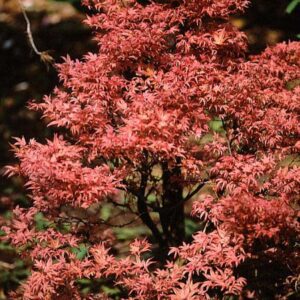 densely branche shrub with bright pink spring leaves. This plant grows to about 2 meter. The leaf colour is red with green. This plant is completely hardy. Recommended quantity per square meter : 1. Common name : Smooth japanese maple Possible alternatives : Acer palmatum ‘Aratama’. Main difference: Acer palmatum ‘Beni-maiko’ grows many faster. Acer palmatum ‘Beni-maiko’. Main difference: Sparse difference. Acer palmatum ‘Corallinum’. Main difference: Sparse difference. Acer palmatum ‘De-shohjoh’. Main difference: Sparse difference. Acer palmatum ‘Otome-zakura’. Main difference: Acer palmatum ‘Otome-zakura’ somewhat more cherryred in spring. . Only available when ordered in advance.