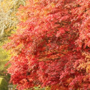 tree-like shrub very beautiful orange red autumn co. The size after 10 years is 350 cm. The leaf colour is green. The flowering period is May. This plant is completely hardy. Recommended quantity per square meter : 1. Common name : Smooth japanese maple Possible alternatives : Acer palmatum ‘Hohgyoku’ Hort. non Japan. Main difference: Acer palmatum ‘Hohgyoku’ Hort. non Japan more yellow autumn colour. Acer palmatum ‘Korean Gem’. Main difference: Acer palmatum ‘Heptalobum’ becomes wider. Acer palmatum ‘Lucky Star’. Main difference: Acer palmatum ‘Lucky Star’ selection from var. heptalobum. Acer palmatum ‘Omato’. Main difference: Acer palmatum ‘Heptalobum’ more upright, multi-coloured in a. . Is present in the nursery, but must be ordered in advance.