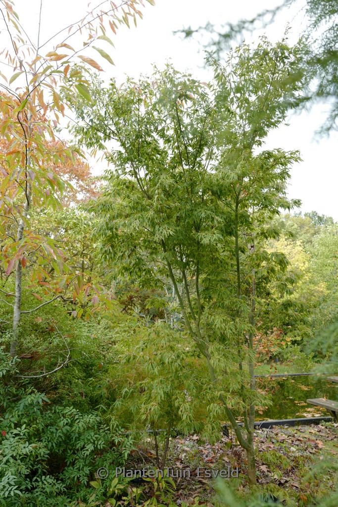 slender Japanese maple wit Threadlike basis of the lobes. The size after 10 years is 200 cm. The leaf colour is bronze green, green in summer. The flowering period is May. This plant is hardy. Recommended quantity per square meter : 1. Common name : Smooth japanese maple . . Is present in the plant shop. Please check actual availability in the current stocklist.