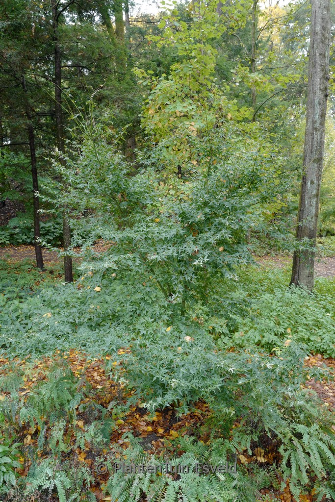 Strong toothed 5-lobed lea Beautiful orange-red autumn colour. The size after 10 years is 150 cm. The leaf colour is dark green. The flowering period is April. This plant is hardy. Recommended quantity per square meter : 1. Common name : Smooth japanese maple . . Is present in the plant shop. Please check actual availability in the current stocklist.