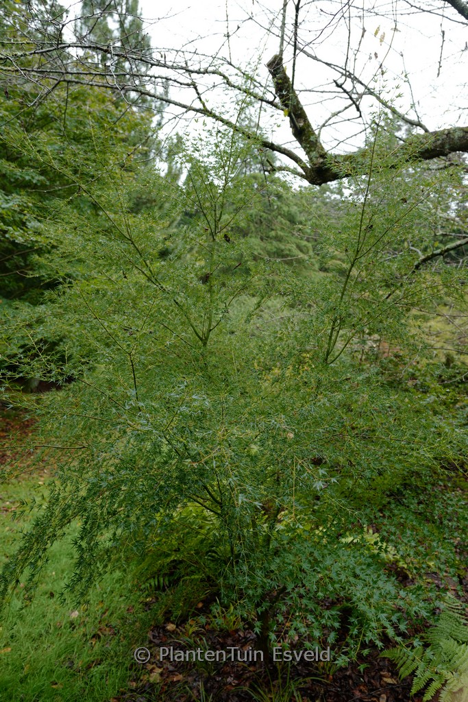 narrow upright shrub rolled leaves. The size after 10 years is 150 cm. The leaf colour is green. The flowering period is May. This plant is completely hardy. Recommended quantity per square meter : 1. Common name : Smooth japanese maple Possible alternative : Acer palmatum ‘Okushimo’. Main difference: Acer palmatum ‘Okushimo’ leaves less rolled. . Is present in the plant shop. Please check actual availability in the current stocklist.