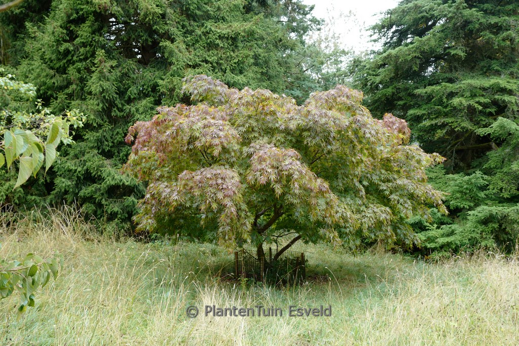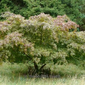 bronze-green, wide growing with orange or red autumn colour. This plant grows to about 400 cm. The leaf colour is dark brownish green. This plant is hardy. Recommended quantity per square meter : 1. Common name : Smooth japanese maple . . Is present in the plant shop. Please check actual availability in the current stocklist.