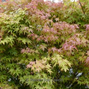 small-leaved dwarf with red leaf tip, suited for bonsai. The size after 10 years is 75 cm. The leaf colour is green. The flowering period is May. This plant is hardy. Recommended quantity per square meter : 1. Common name : Smooth japanese maple Possible alternative : Acer palmatum ‘Oto hime’. Main difference: Acer palmatum ‘Murasaki-kiyohime’ red leaf tips. . Is present in the plant shop. Please check actual availability in the current stocklist.