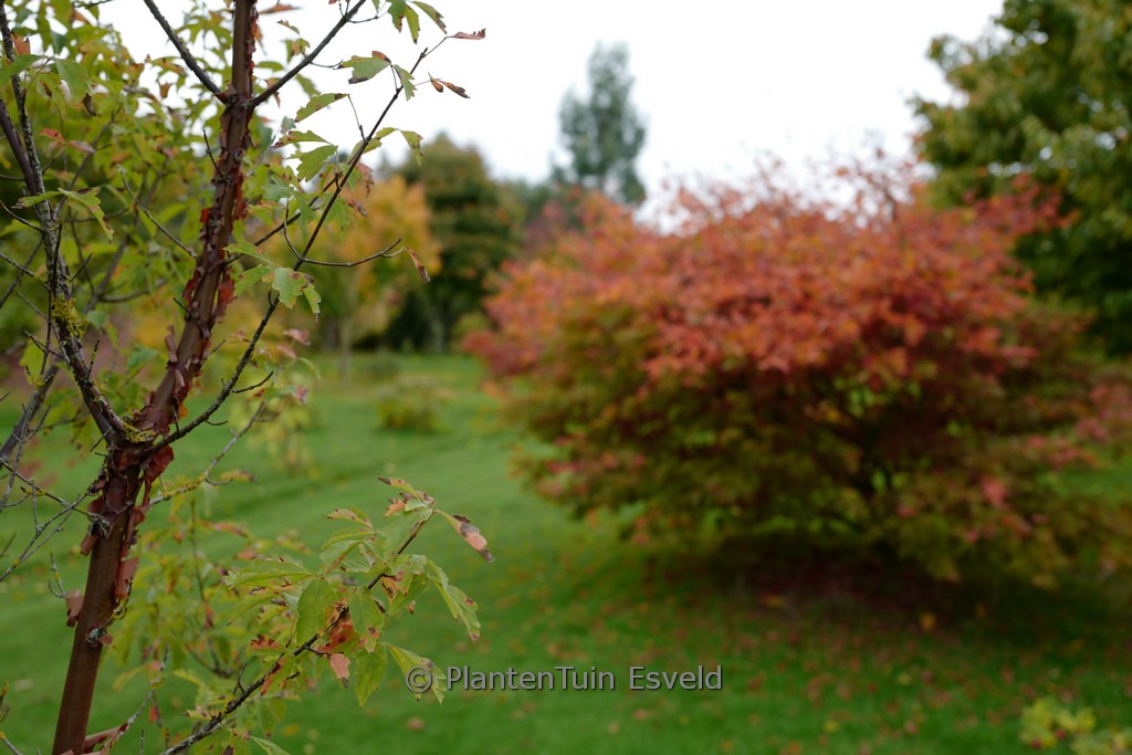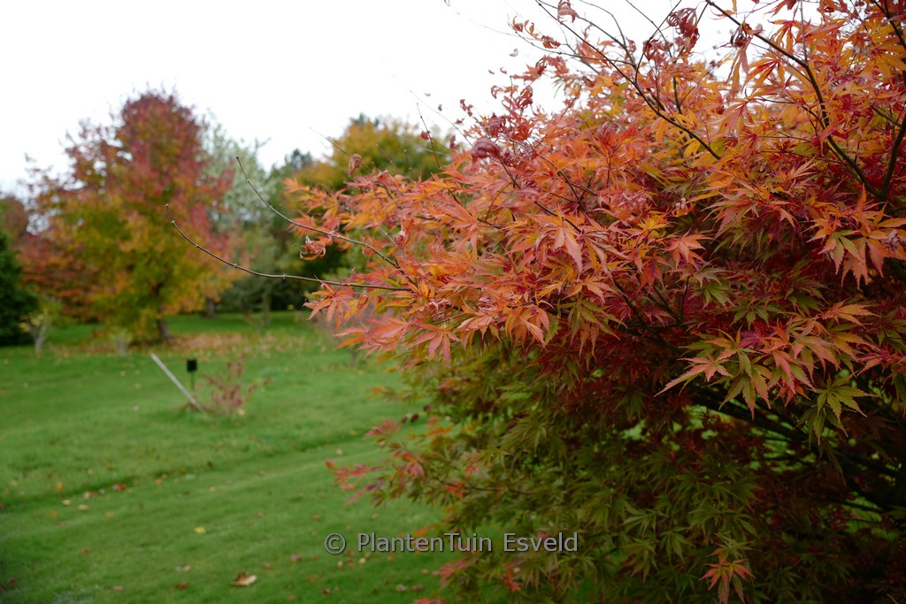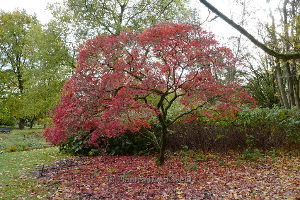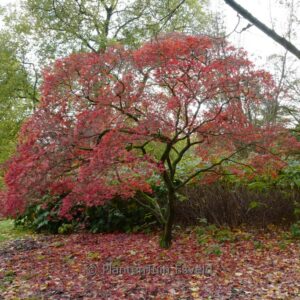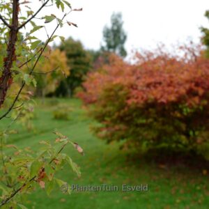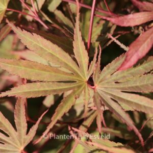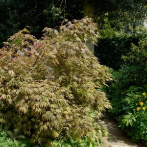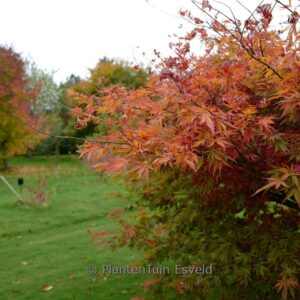 Bright red autumn colour and elegant shape. Tall bush. This plant grows to about 450 cm. The leaf colour is dark-green. This plant is hardy. Recommended quantity per square meter : 1. Common name : Smooth japanese maple Possible alternative : Acer palmatum ‘Matsu-Kaze’. Main difference: Acer palmatum ‘Nicholsonii’ leaves more olive. . Only available when ordered in advance. .