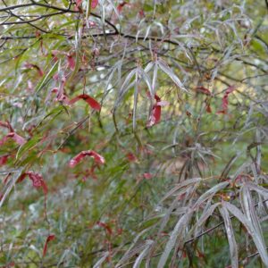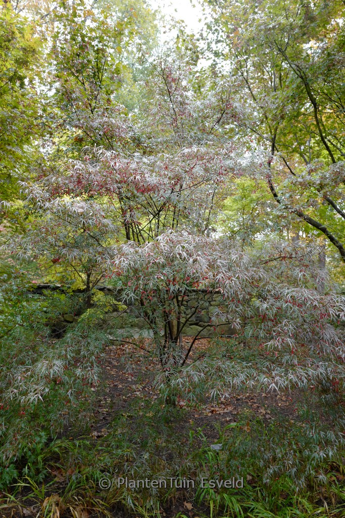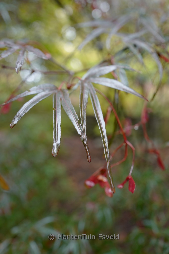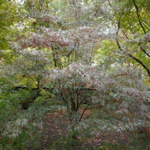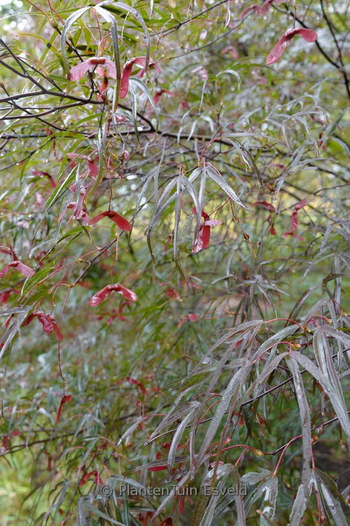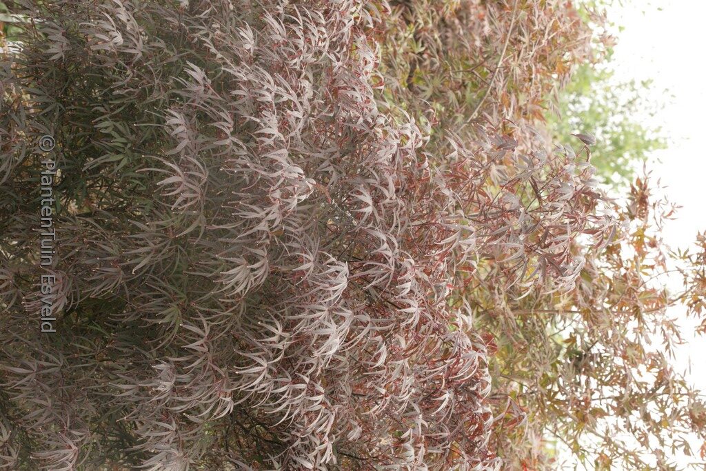 narrow medium sized shrub with linear leaves. The size after 10 years is 200 cm. The leaf colour is reddish purple. The flowering period is May. This plant is hardy. Recommended quantity per square meter : 1. Common name : Smooth japanese maple Possible alternatives : Acer palmatum ‘Atrolineare’. Main difference: Acer palmatum ‘Pung Kill’ grows somewhat faster. Acer palmatum ‘Beni-ohtake’. Main difference: sparse difference. Acer palmatum ‘Enkan’. Main difference: Acer palmatum ‘Enkan’ somewhat darker red. Acer palmatum ‘Red Pygmy’. Main difference: Acer palmatum ‘Red Pygmy’ somewhat lighter red. . Only available when ordered in advance.