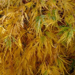 Green Dissectum form yellow autumn colour, slow grower. The size after 10 years is 150 cm. The leaf colour is green. The flowering period is May. This plant is completely hardy. Recommended quantity per square meter : 1. Common name : Smooth japanese maple Possible alternatives : Acer palmatum ‘Ao-shidare’. Main difference: sparse difference. Acer palmatum ‘Brocade’. Main difference: Acer palmatum ‘Seki-mori’ grows somewhat flatter. Acer palmatum ‘Dissectum’. Main difference: Acer palmatum ‘Dissectum’ finer lobed. . Is present in the nursery, but must be ordered in advance.