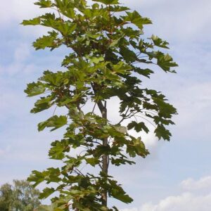 Norwegian maple large tree good large tree. The size after 10 years is 10 m. The leaf colour is yellow. The flowering period is April. This plant is completely hardy. Common name : Norway maple Possible alternative : Acer platanoides ‘Cleveland’. Main difference: both Street tree selections. . Only available when ordered in advance.