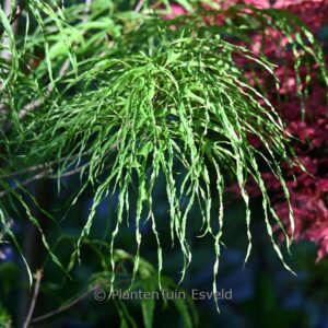 Norwegian fern-esdoorn with very deep incised leaves. The size after 10 years is 4 meter. The leaf colour is green. The flowering period is May. This plant is completely hardy. Common name : Norway maple . . Is present in the plant shop. Please check actual availability in the current stocklist.