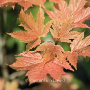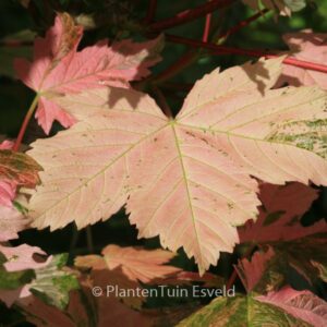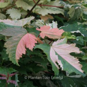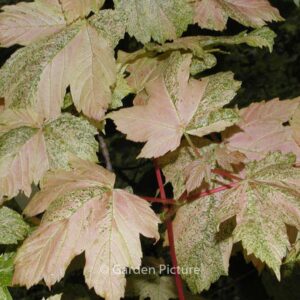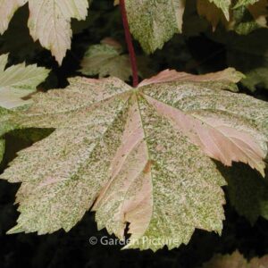 variegated, common maple. The size after 10 years is 750 cm. The leaf colour is variegated. The flowering period is May. This plant is completely hardy. Recommended quantity per square meter : 1. Common name : Sycamore Possible alternative : Acer pseudoplatanus ‘Prince Camille de Rohan’. Main difference: sparse difference. . Only available when ordered in advance.