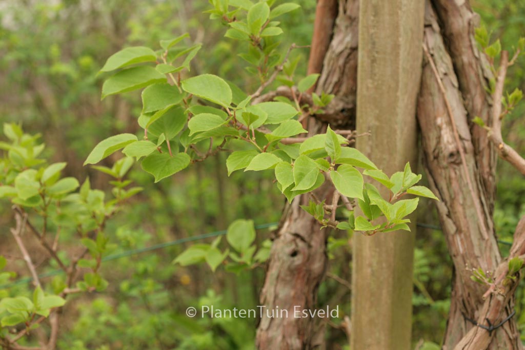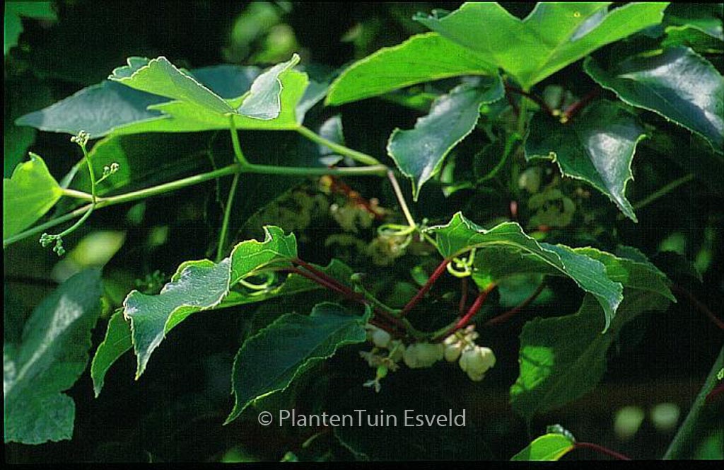 Climber, Russian kiwi small fresh tasting fruits. The size after 10 years is 350 cm. The leaf colour is green. This plant is completely hardy. . . Only available when ordered in advance.
