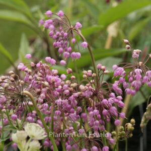 American small onion with hanging flowertrusses. The average size is 35 cm. The flower colour is lilac-pink. The flowering period is June – July. This plant is hardy. Recommended quantity per square meter : 9. . . Only available when ordered in advance.