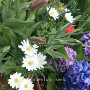 bulb form Anemone. The average size is 15 cm. The flower colour is white. The flowering period is March – April. This plant is completely hardy. Recommended quantity per square meter : 11. Quantity per unit : 25 . This plant has received the following award: AGM, Award of Garden Merit, 1993. . Only available when ordered in advance.