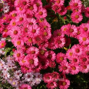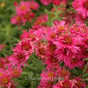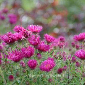 High autimnaster with rough leaves so no mildew. The average size is 100 cm. The flower colour is carminered. The flowering period is September – October. This plant is hardy. Recommended quantity per square meter : 5. . . Is present in the plant shop. Please check actual availability in the current stocklist.