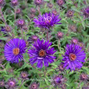 Rather compact remaining selection with beautiful flower col. This plant grows to about 110 cm. The flower colour is deep dark purple. The flowering period is September – October. This plant is completely hardy. Recommended quantity per square meter : 7. . . Only available when ordered in advance.