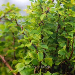 Compact globular dwarf with radiating lemon leaves. This plant grows to about 40 cm. The flower colour is yellow. The flowering period is April – May. This plant is completely hardy. Common name : Barberry . . Only available when ordered in advance.