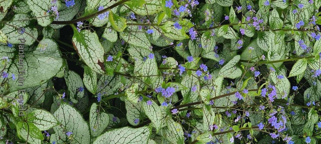Almost white, large leaves green veins. This plant grows to about 30 cm. The flower colour is sky blue. The flowering period is April – May. This plant is completely hardy. Recommended quantity per square meter : 9. . . Only available when ordered in advance.