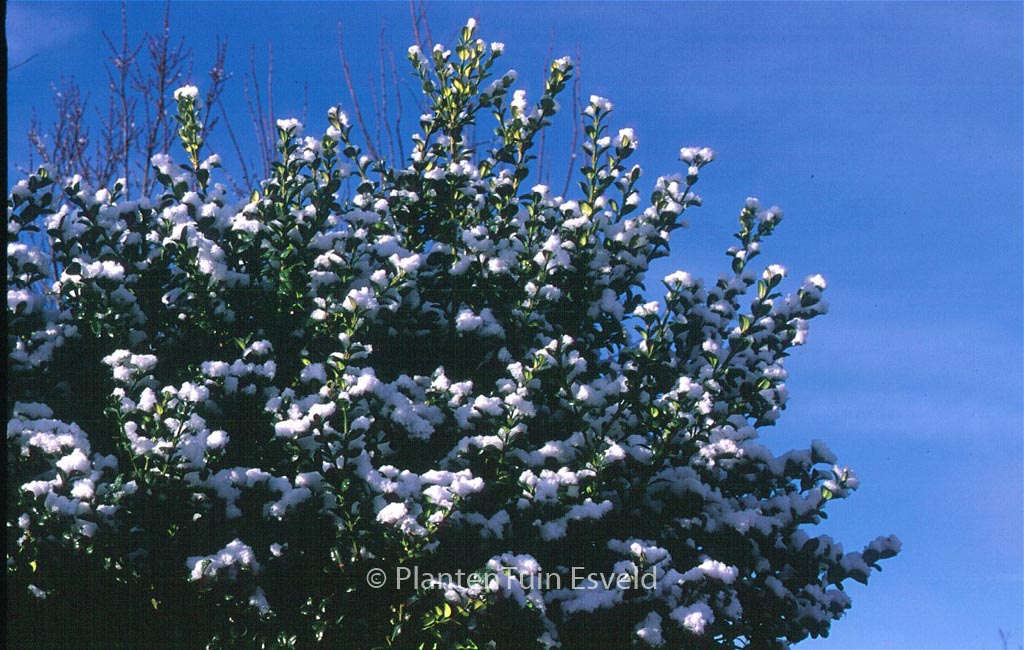 upright shrub becoming large for a Buxus. The size after 10 years is 200 cm. The leaf colour is green. This plant is completely hardy. Common name : Common box Possible alternative : Buxus sempervirens ‘Rotundifolia’. Main difference: almost identical. . Only available when ordered in advance.
