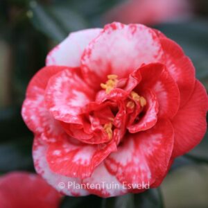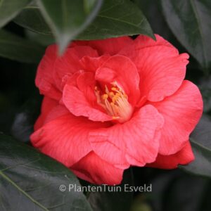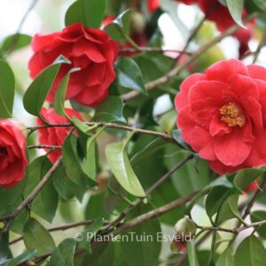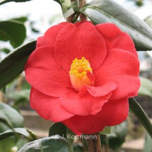 semi-double flowers sheltered place. The size after 10 years is 200 cm. The flower colour is dark red. The flowering period is February – April. This plant is mostly hardy. Common name : Common camellia . This plant has received the following award: AGM, Award of Garden Merit, 1993. . Is present in the plant shop. Please check actual availability in the current stocklist.