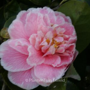 double-flowering Camellia with silvery rimmed pink flowers. The size after 10 years is 200 cm. The flower colour is pink. The flowering period is March. This plant is mostly hardy. Common name : Common camellia . . Is present in the plant shop. Please check actual availability in the current stocklist.