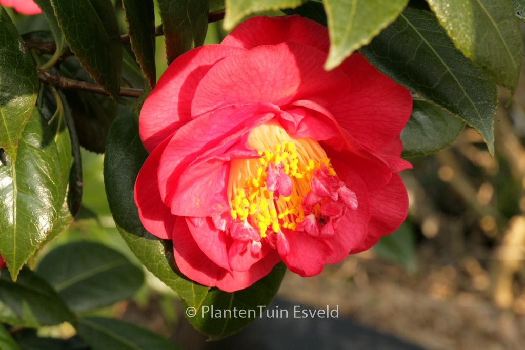 double-flowering Camellia with bright flower colour. The size after 10 years is 200 cm. The flower colour is red. The flowering period is February – March. This plant is hardy. Common name : Common camellia . . Is present in the plant shop. Please check actual availability in the current stocklist.