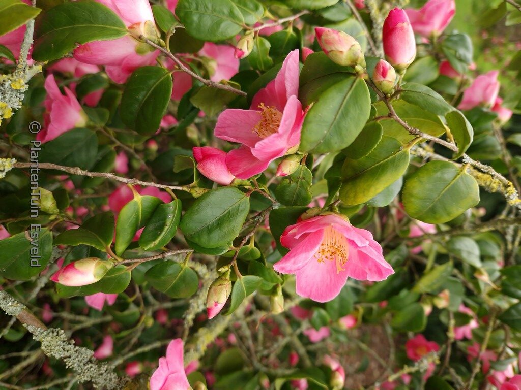 Japanese selection from 1977 with medium sized, single,. This plant grows to about 1,5 m. The flower colour is pink. The flowering period is January – March. This plant is mostly hardy. Recommended quantity per square meter : 1. Common name : Camellia fragrant flowers . . Is present in the plant shop. Please check actual availability in the current stocklist.