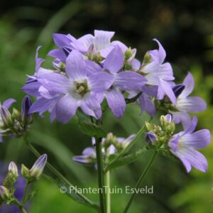 Bell flower with blue flowers in the summer. The average size is 80 cm. The flower colour is blue. The flowering period is June – August. This plant is hardy. Recommended quantity per square meter : 5. . This plant has received the following award: AGM, Award of Garden Merit, 1993. . Only available when ordered in advance.