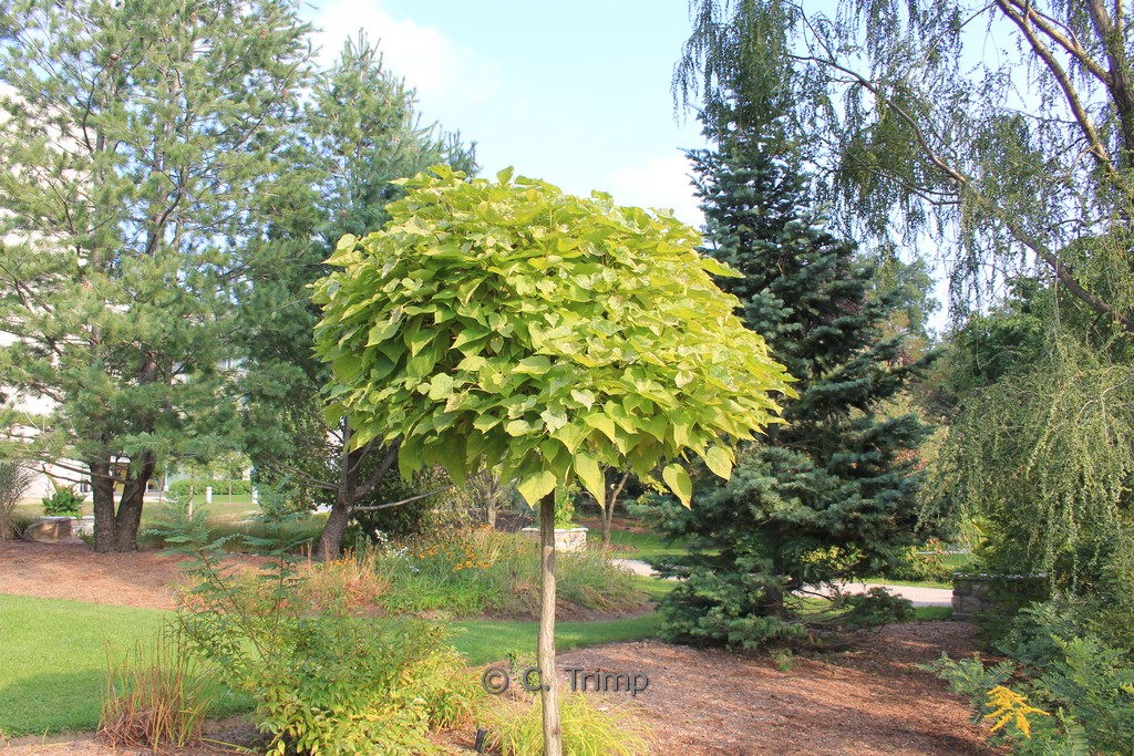 dwarf Catalpa globular habit, leaf develops late. The size after 10 years is 450 cm. The flower colour is white. The flowering period is May – June. This plant is completely hardy. Recommended quantity per square meter : 1. Common name : Southern catalpa Also available in larger sizes, prices on demand. . . Is present in the plant shop. Please check actual availability in the current stocklist. . . . . . . . . . . .