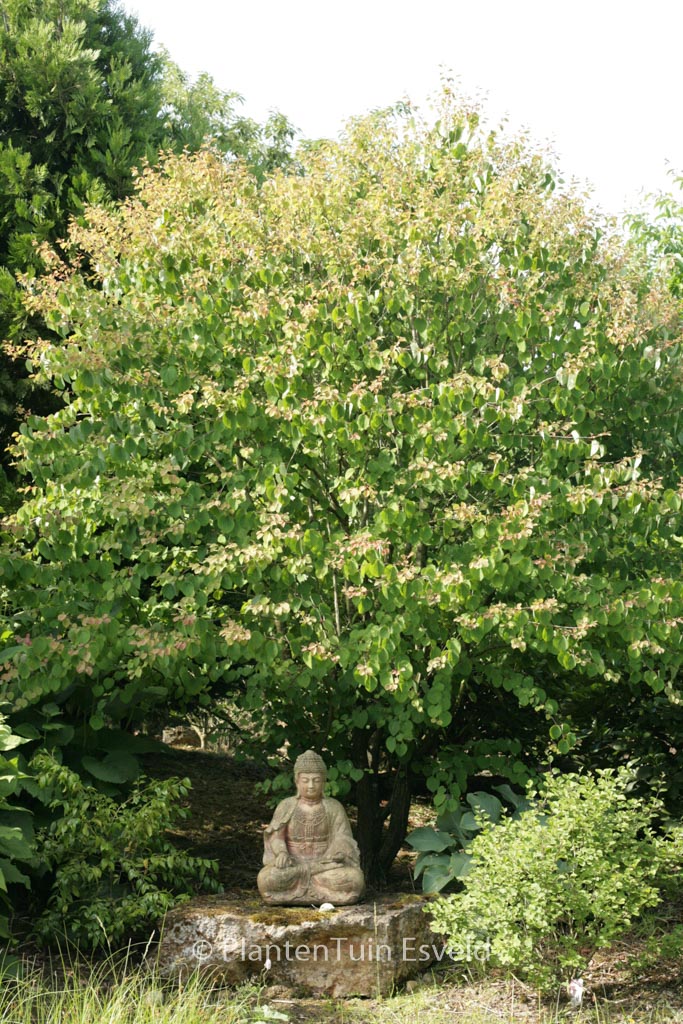 rounded kadsura tree beautiful new selection. The size after 10 years is 450 cm. The flower colour is orange yellow. The flowering period is October. This plant is completely hardy. Recommended quantity per square meter : 1. Common name : Japanese katsura tree . This plant has received the following award: AGM, Award of Garden Merit, 2012. . Is present in the plant shop. Please check actual availability in the current stocklist.