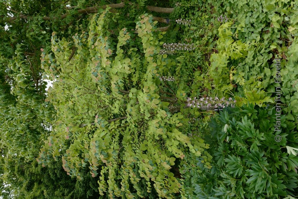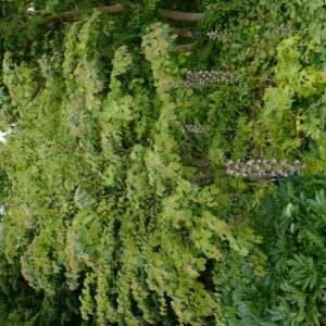 New growth leaves red dense growth; yellow autumn colour. This plant grows to about 3 meter. The flower colour is green. The flowering period is April – May. This plant is hardy. Common name : Katsura tree . . Only available when ordered in advance.