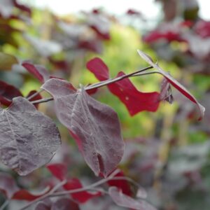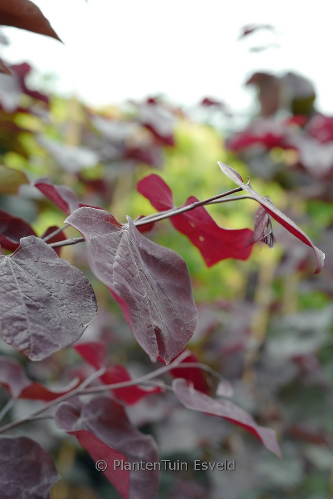 Burgundy to purple leaves, in autumn shades of orange, bronze. This plant grows to about 2 m. The flower colour is pink. The flowering period is April. This plant is completely hardy. Recommended quantity per square meter : 1. Common name : Eastern redbud and red purple . . Only available when ordered in advance.