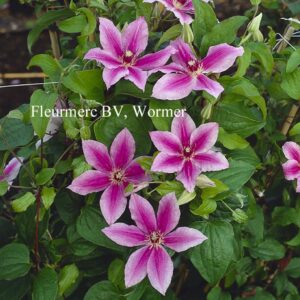 Patens group with stripe. slow prune. The size after 10 years is 2 m. The flower colour is pink. The flowering period is July – August. This plant is completely hardy. Recommended quantity per square meter : 1. . . Only available when ordered in advance.