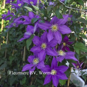 Patens group little pruning. The size after 10 years is 3 m. The flower colour is blue. The flowering period is June – August. This plant is hardy. Recommended quantity per square meter : 1. Possible alternative : Clematis ‘Perle d’Azur’. Main difference: Clematis ‘H. F. Young’ most beautiful blue. . Only available when ordered in advance.