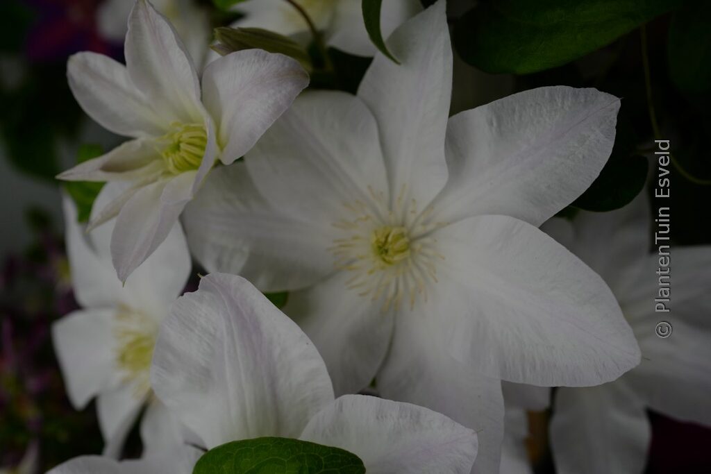 Patens group. The size after 10 years is 200 cm. The flower colour is white. The flowering period is May – August. This plant is hardy. Recommended quantity per square meter : 1. . . Only available when ordered in advance. .