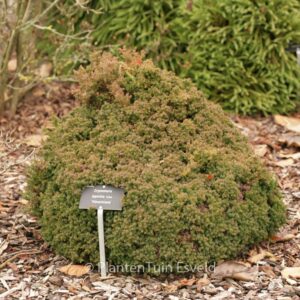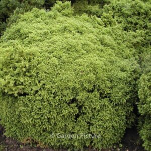 dwarf, for rock garden very compact habit. The size after 10 years is 80 cm. The needle colour is greygreen. This plant is completely hardy. . This plant has received the following award: AGM, Award of Garden Merit, 1993. . Is present in the plant shop. Please check actual availability in the current stocklist.
