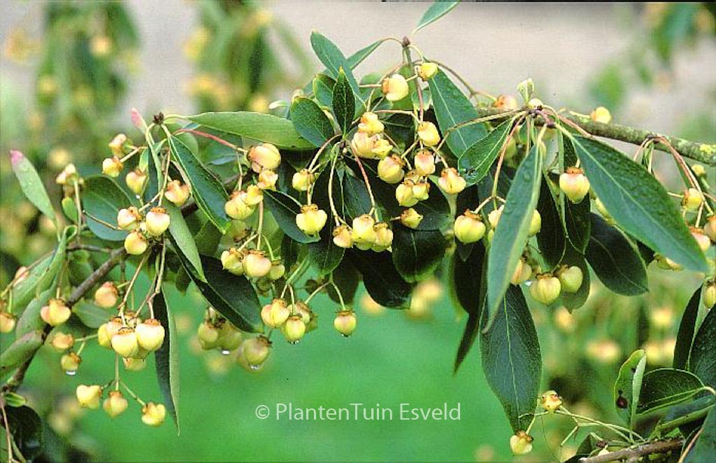 narrow-leaved species. The size after 10 years is 400 cm. The flower colour is white. The flowering period is July. This plant is hardy. Common name : Spindle tree . . Only available when ordered in advance.