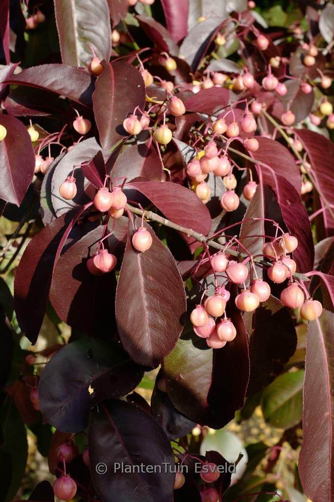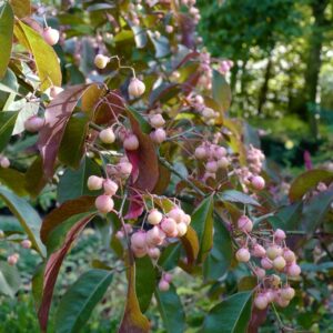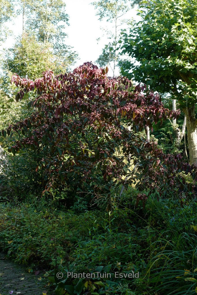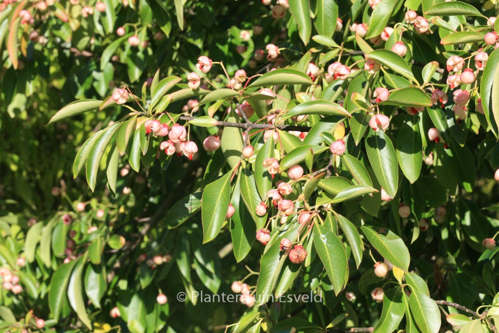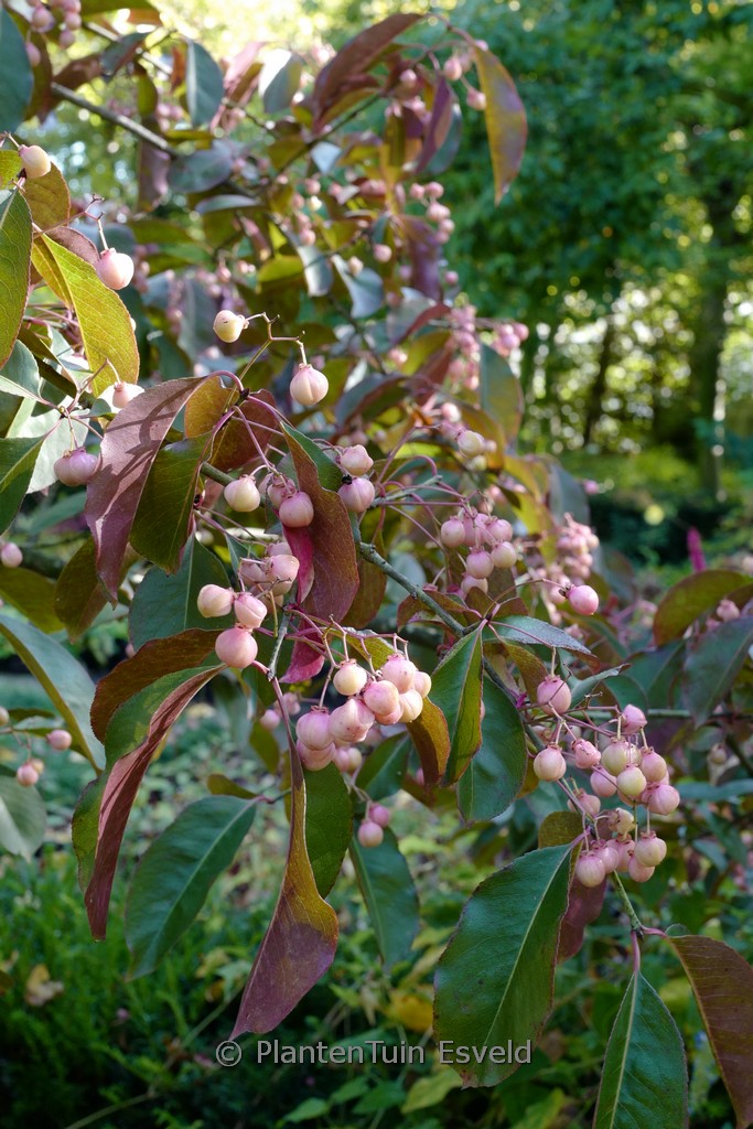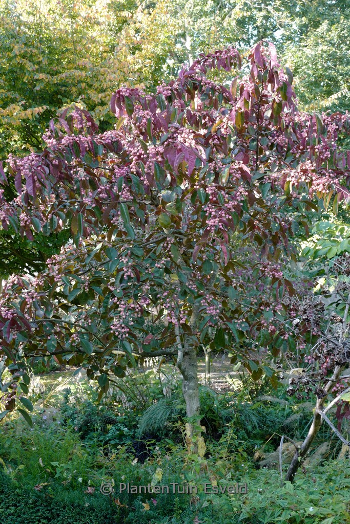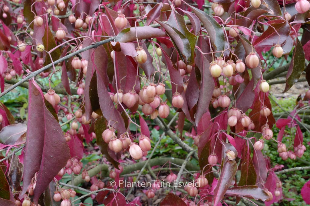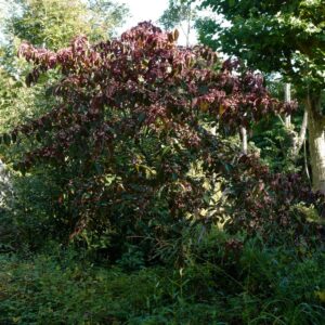 semi-evergreen shrub upright growth, winered autumn colo. The size after 10 years is 400 cm. The berry colour is pink. The berry period is September – October. This plant is hardy. Common name : Spindle tree . . Only available when ordered in advance.