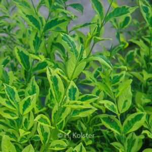 yellow variegated Spindle. The size after 10 years is 200 cm. This plant is hardy. Recommended quantity per square meter : 1. Common name : Spindle tree . . Only available when ordered in advance.