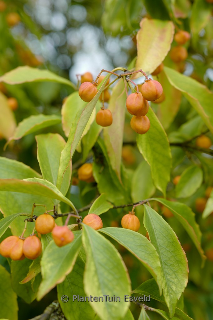 spindle tree evergreen shrub. The size after 10 years is 250 cm. The flower colour is yellow. The flowering period is October. This plant is hardy. Common name : Spindle tree . . Is present in the plant shop. Please check actual availability in the current stocklist.