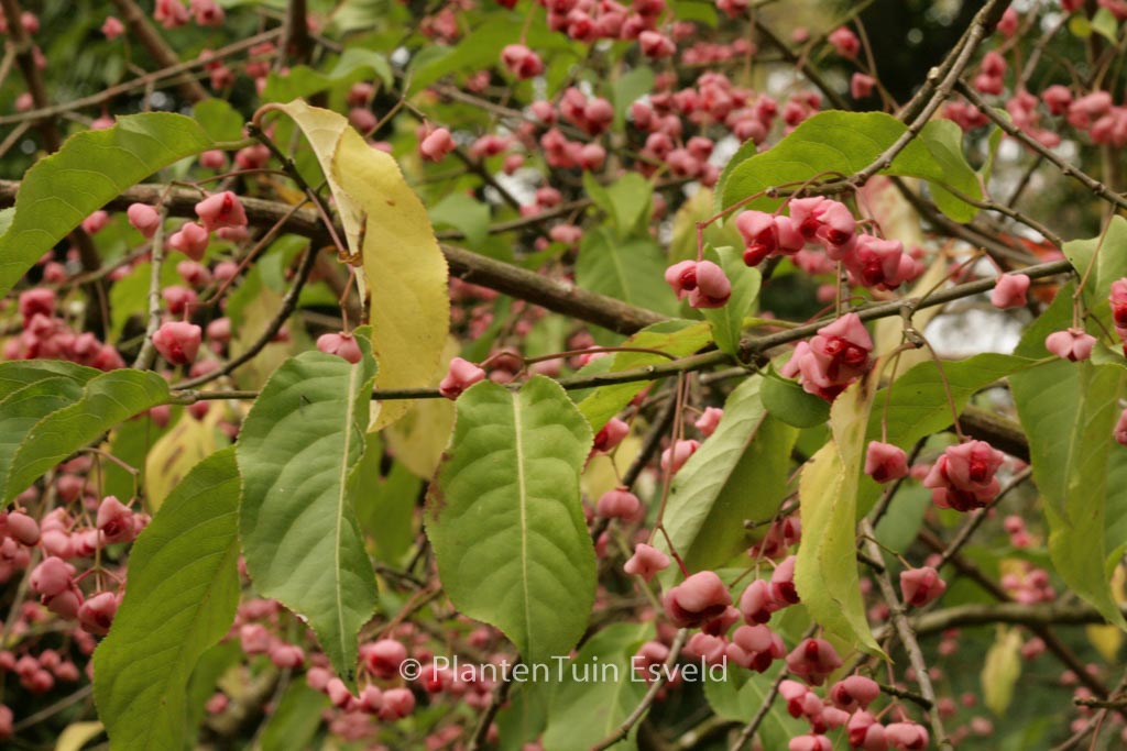 Japanese Spindle tree. Red autumn colour. Attractive shrub. The flower colour is pink. The flowering period is May – June. This plant is hardy. Common name : Spindle tree . . Only available when ordered in advance.