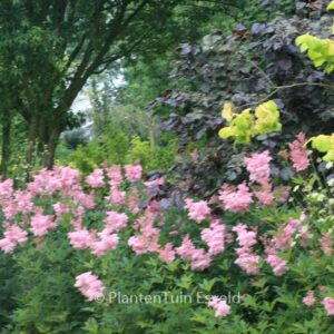Swamp-spiraea. Large flower plumes on impressive plants. The average size is 175 cm. The flower colour is pink. The flowering period is June – August. This plant is hardy. Recommended quantity per square meter : 5. . This plant has received the following award: AGM, Award of Garden Merit, 1993. . Only available when ordered in advance.