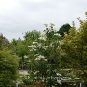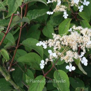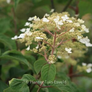 Selection from Arboretum Kalmthout, Belgium. This plant grows to about 250 cm. The flower colour is white. The flowering period is June – July. This plant is hardy. Recommended quantity per square meter : 2. Common name : Hydrangea . . Is present in the plant shop. Please check actual availability in the current stocklist.