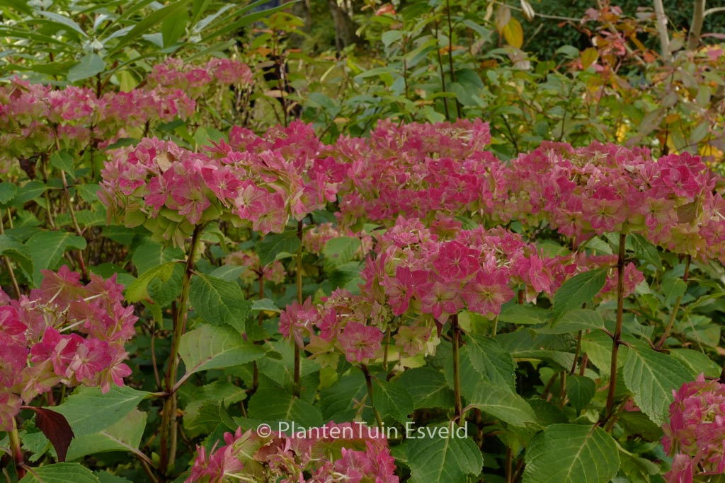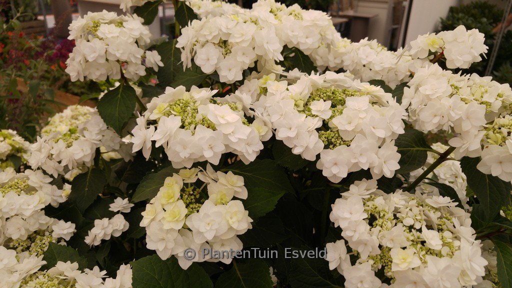 Lace-cap hydrangea with double flowered flowers. This plant grows to about 1. 25 m. The flower colour is pure white, red in autumn. The flowering period is July – September. This plant is hardy. Recommended quantity per square meter : 3. Common name : Hydrangea . This plant has received the following award: AGM, Award of Garden Merit, 2018. . Is present in the plant shop. Please check actual availability in the current stocklist.