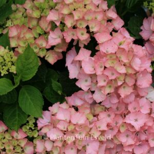 round hydrangea distinct green discoloring, cut flower!. The size after 10 years is 150 cm. The flower colour is pink, autumn colour green. The flowering period is August – October. This plant is hardy. Recommended quantity per square meter : 2. Common name : Hydrangea . . Only available when ordered in advance.