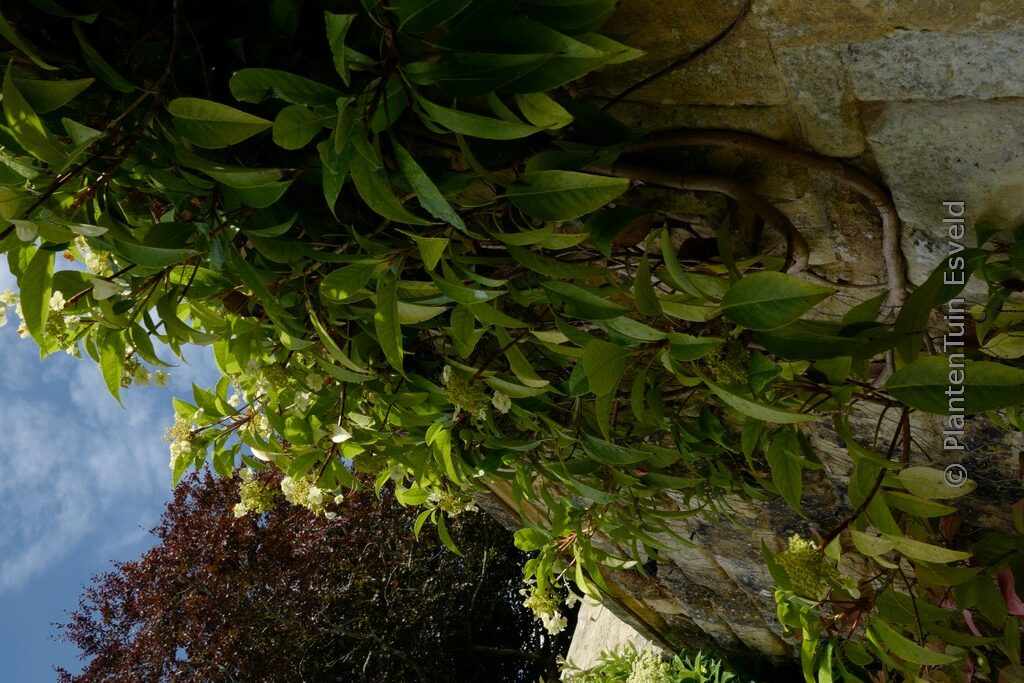 evergreen climbing hydrang self-attaching, lace-cap. The size after 10 years is 300 cm. The flower colour is white. The flowering period is July – September. This plant is mostly hardy. Recommended quantity per square meter : 1. Common name : Hydrangea . . Is present in the plant shop. Please check actual availability in the current stocklist. .