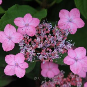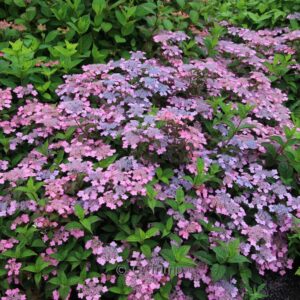 small hydrangea with beautiful small flower trusses. The size after 10 years is 75 cm. The flower colour is pink. The flowering period is June – August. This plant is hardy. Recommended quantity per square meter : 2. Common name : Hydrangea . . Is present in the plant shop. Please check actual availability in the current stocklist.