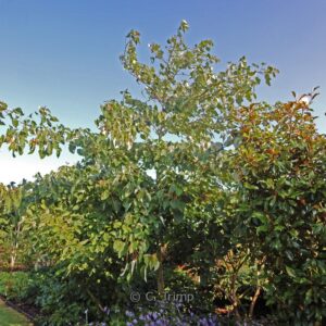 story-forming Chinese tree with distinct red fruits. The size after 10 years is 5 meter. The fruit colour is red. The flowering period is May. This plant is hardy. Common name : Idesia . . Only available when ordered in advance.